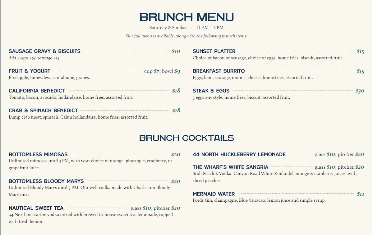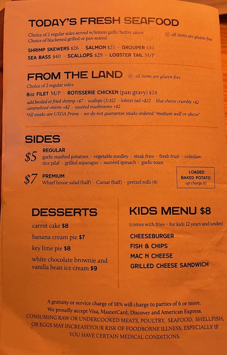 Finish your meal with desserts that are simply irresistible. The White Chocolate Banana Bread Pudding and classic Key Lime Pie promise a sweet note to end your feast. Each dish is meticulously crafted, ensuring a delightful dining experience paired with exceptional service. Whether it’s a casual family dinner or a lively night out, The Wharf guarantees memorable moments filled with great food, friendly staff, and live music vibes.