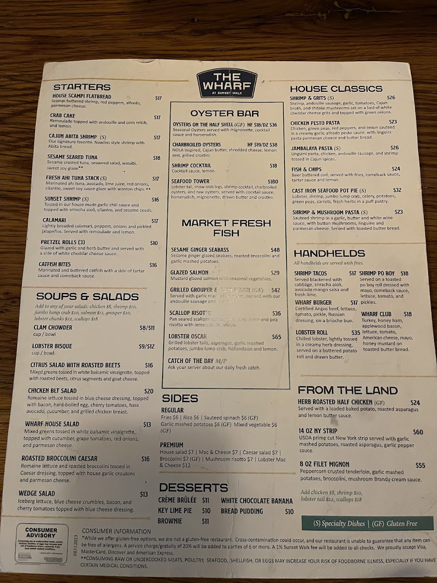 Welcome to The Wharf at Sunset Walk, a culinary gem nestled in Kissimmee, Florida. This vibrant eatery offers a menu that boldly celebrates the rich flavors of Cajun cuisine. Start your journey with enticing options like the Cajun Abita Shrimp and perfectly glazed Pretzel Rolls, ideal for sharing. For a heartier experience, dive into the Shrimp and Grits or the spicy Jambalaya Pasta, both highlighting the restaurant’s commitment to fresh, flavorful ingredients.
